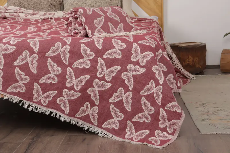 Manta de picnic color burdeos con estampado animal y mariposas, 79 x 95 pulgadas