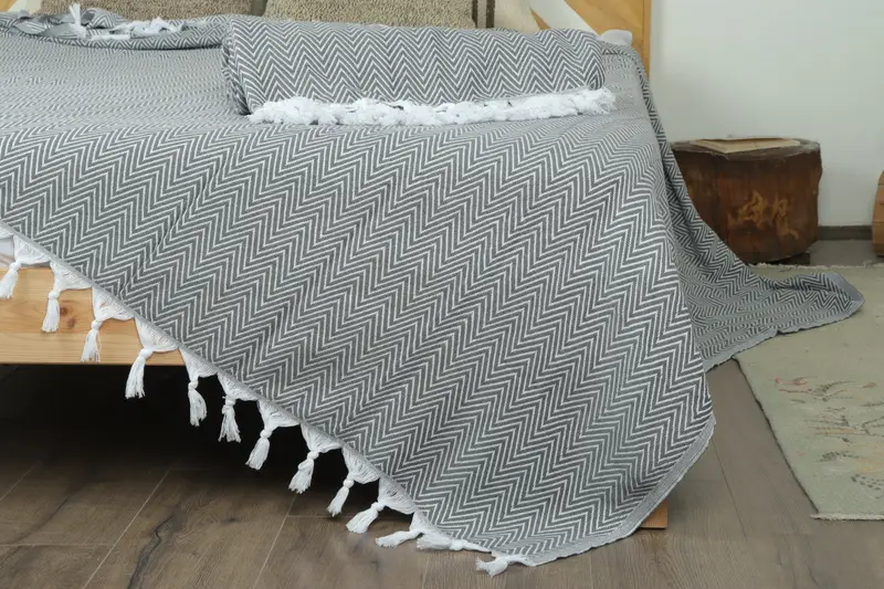 Bedcover Manta Chevron gris oscuro hecha a mano, 71x87 pulgadas