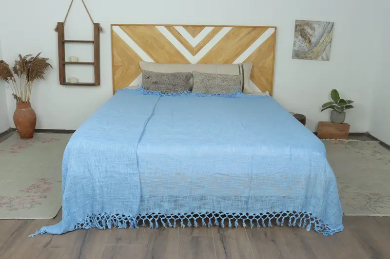 Manta de Playa de Algodón Orgánico Geométrico Azul, Beige, 56x79 Pulgadas