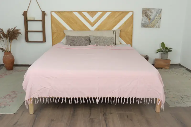 Manta de tiro rosa tejida a mano, color beige secundario, 71 x 91 pulgadas