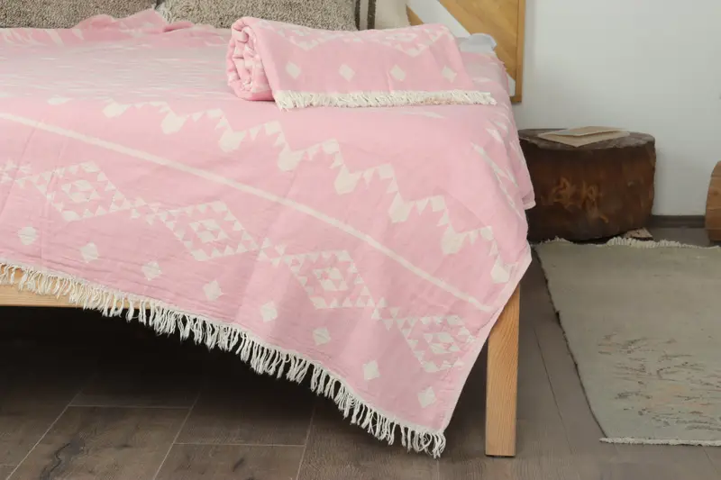 Colcha turca, manta geométrica rosa, funda para sofá de 60x71 pulgadas