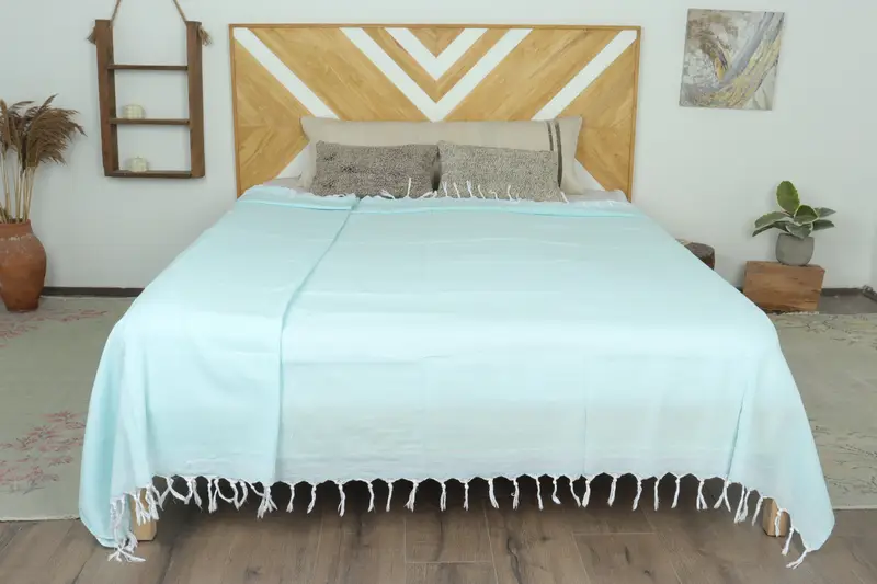 Manta de playa color menta claro, 2 mantas a rayas, algodón de 56 x 91 pulgadas