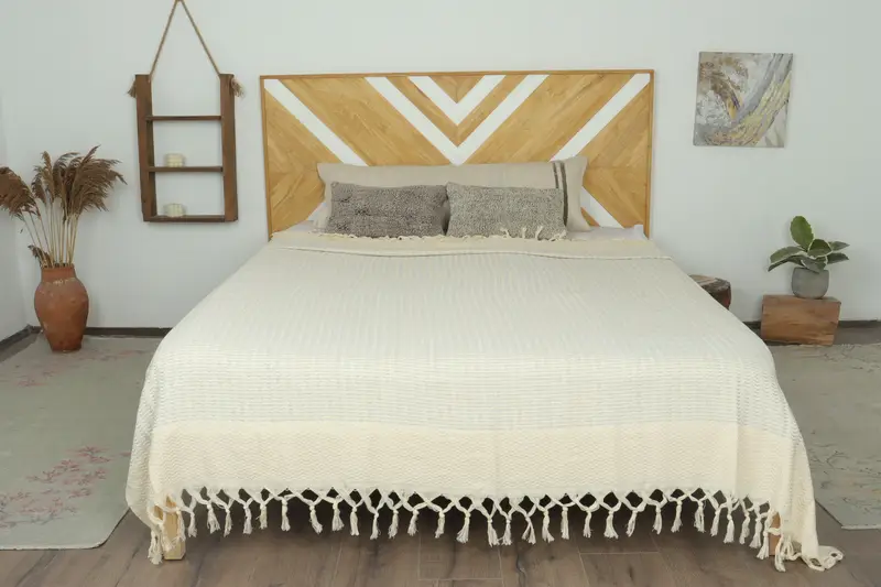 Manta turca bordada gris claro, patrón de diamantes, 75 x 89 pulgadas