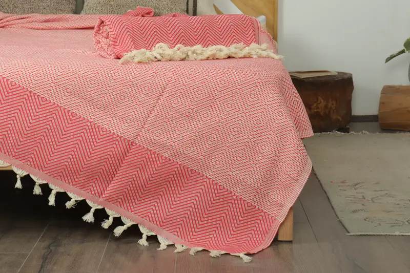 Venta al por mayor de colcha turca bermellón, manta de diamantes, 79x91 pulgadas