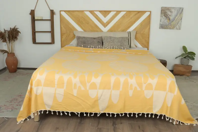 Colcha turca con estampado animal mostaza tejida a mano, beige, 79 x 99 pulgadas