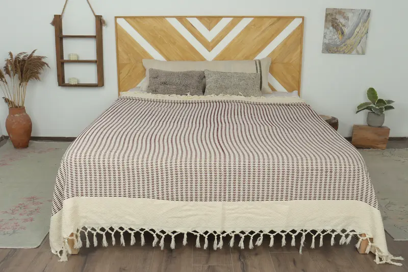 Manta turca con patrón de diamantes en color burdeos y beige, 75 x 89 pulgadas