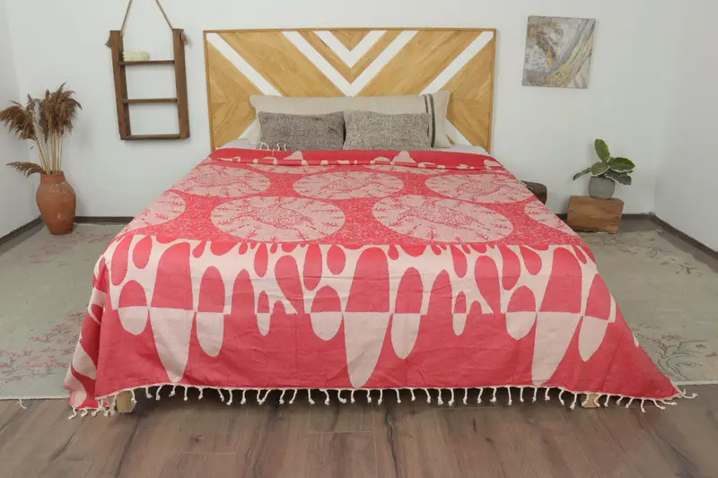 Manta Turca Estampado Animal Rojo Personalizable, 79x99 Pulgadas
