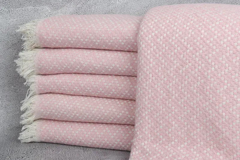 Manta de playa de algodón turco, color rosa polvo claro, en forma de espiga, 67 x 75 pulgadas