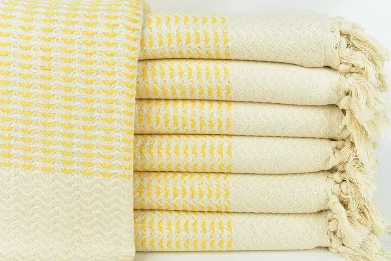 Algodón turco de primera calidad caracterizado por sus propiedades de alta absorbencia y secado rápido, lo que ofrece una alternativa única a las toallas normales. Las dimensiones se especifican como 40 x 77 pulgadas (100 x 195 cm), con una tolerancia de 1 a 2,5 cm y un peso aproximado de 390 gramos. Tejido a mano mediante técnicas tradicionales, garantizando uniformidad y durabilidad.