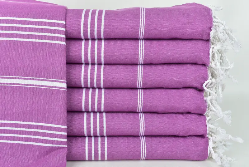 En la creación de estas toallas de playa se utiliza algodón turco de primera calidad, que garantiza una absorción superior y características de secado rápido. Caracterizadas por su composición de fibras de alta calidad, estas toallas absorben el agua de manera eficiente y se secan rápidamente. Las toallas de algodón turco pesan aproximadamente 280 gramos y las dimensiones se especifican como 40 x 71 pulgadas o 100 x 180 cm con una tolerancia de 1 a 2,5 cm.