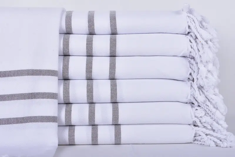 Las fibras de algodón turco de primera calidad garantizan una absorción superior y tiempos de secado rápidos, lo que las hace ideales para diversos usos. Caracterizadas por una dimensión de 40x71 pulgadas, equivalente a 100x180 cm con una tolerancia de 1-2,5 cm, las toallas pesan aproximadamente 400 gramos. Tejidas a mano con métodos tradicionales, estas toallas ofrecen una calidad constante a pesar de pequeñas variaciones de tamaño.