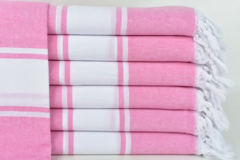 El algodón turco, conocido por su superior absorbencia y suavidad, garantiza un secado rápido. Se caracteriza por una composición de fibras que le permite absorber significativamente más agua que las toallas normales, lo que da como resultado un producto liviano. Con un peso de alrededor de 290 gramos, las toallas turcas miden 40x71 pulgadas (100x180 cm), con una tolerancia de ±2,5 cm.