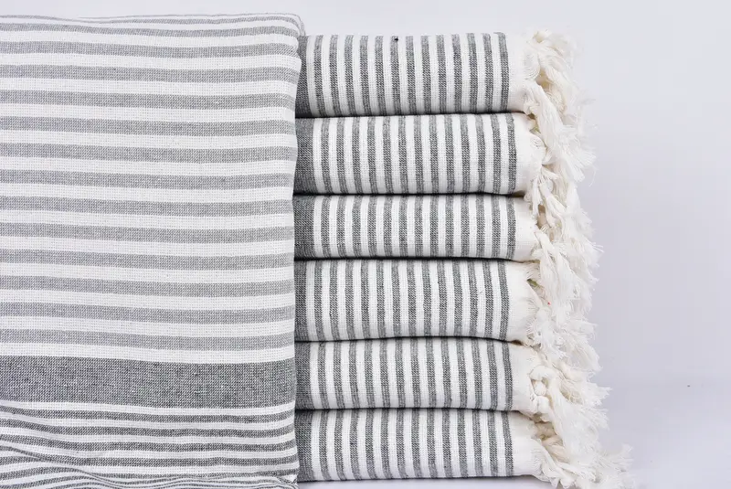 Las fibras de algodón turco de primera calidad, reconocidas por su excepcional absorción, garantizan que las toallas se sequen rápidamente sin necesidad de secadora. Caracterizadas por un ancho de 38 pulgadas y una longitud de 67 pulgadas, correspondientes a 95x170 centímetros, estas toallas toleran variaciones de tamaño de hasta 5 centímetros. Las toallas de playa turcas pesan aproximadamente 430 gramos, lo que facilita su transporte.