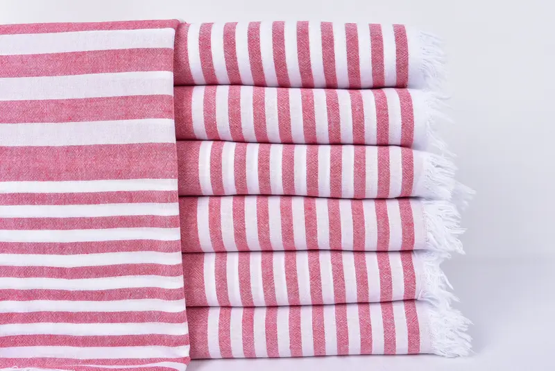 El algodón turco de primera calidad, caracterizado por su absorbencia superior y textura suave, garantiza un secado rápido y una mayor comodidad. Las dimensiones de la tela son 40x65 pulgadas o 100x165 cm con una tolerancia de 1-2,5 cm y el peso es de aproximadamente 175 gramos. Las toallas tejidas a mano ofrecen un estado preencogido, lo que elimina la necesidad de secarlas en secadora.