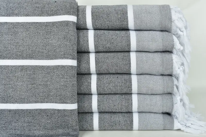 Confeccionadas con telares manuales tradicionales, estas toallas están hechas de algodón turco de primera calidad, lo que garantiza una alta absorbencia y tiempos de secado rápidos. Caracterizadas por su naturaleza liviana, cada toalla pesa aproximadamente 400 gramos y están meticulosamente tejidas en un tamaño estándar de 40x67 pulgadas, con una tolerancia de 1-2,5 cm.