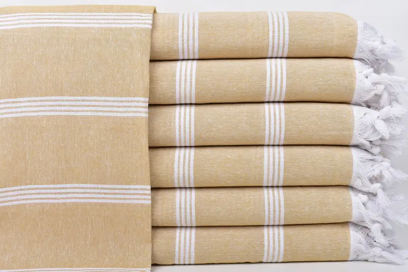 Toalla de playa orgánica de algodón turco a rayas mostaza, 30 x 73 pulgadas