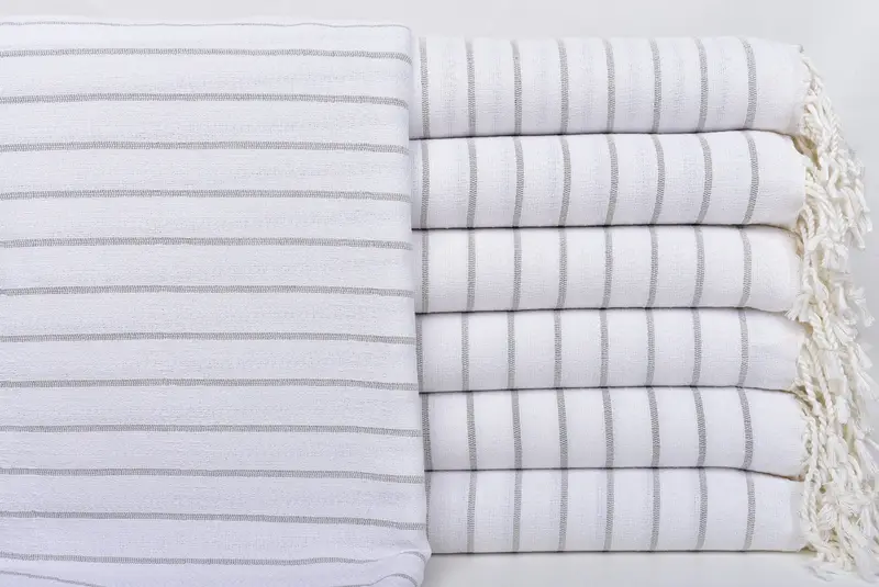 Toalla turca personalizada a rayas peshtemal gris claro, 40 x 71 pulgadas
