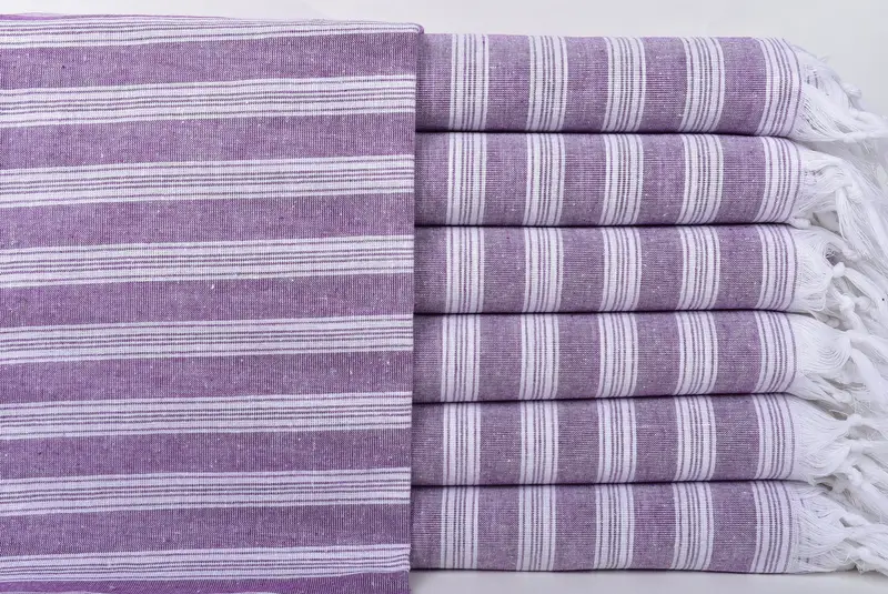 Toalla de playa turca personalizada a rayas Damson, beige, 40 x 71 pulgadas