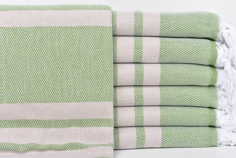 Toalla Turca de Algodón Orgánico Chevron Caqui Verde-Beige, 36x67 Pulgadas