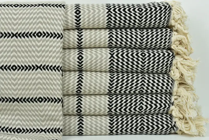 Toalla de playa personalizada con monograma, rayas de diamantes en negro y gris claro, 40 x 79 pulgadas