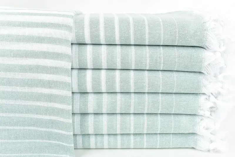 Toalla turca personalizada, rayas blancas y verdes claras, 40 x 69 pulgadas