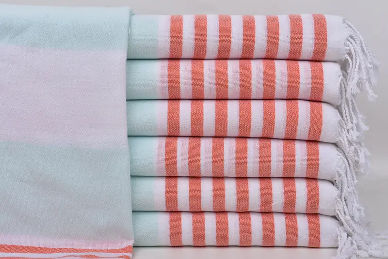 Toalla Turca Monograma Playa Rayas Naranja Menta, 40x71 Pulgadas