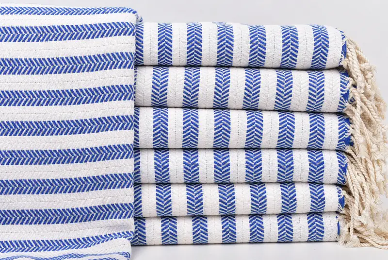 Toalla de playa turca con diseño de chevrón azul, 40 x 71 pulgadas