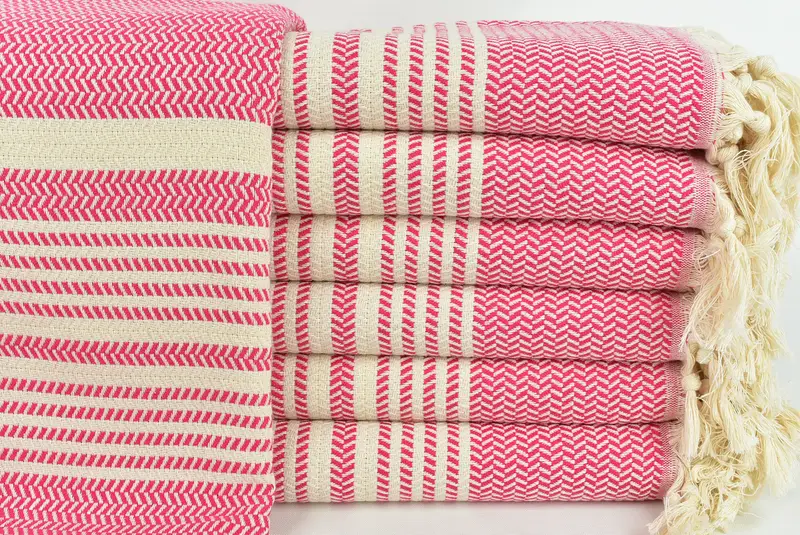 Toalla de playa con monograma, algodón turco, rayas fucsia, 40 x 71 pulgadas