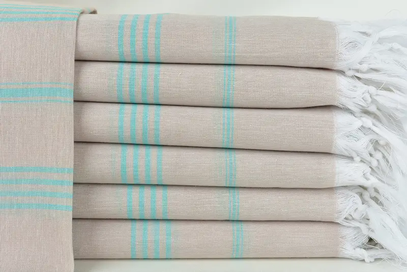 Toalla de playa turca personalizada con rayas beige y verde petróleo, 40 x 71 pulgadas