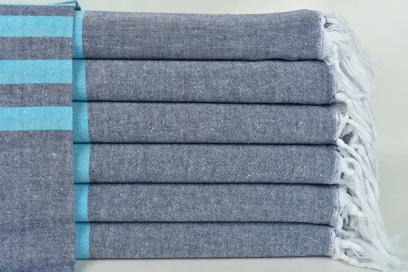 Toalla de playa turca personalizada a rayas turquesa y azul marino, 36 x 71 pulgadas