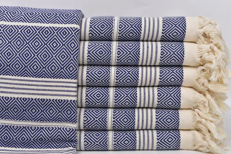 Toalla de playa turca personalizada Diamante azul marino, 38 x 69 pulgadas