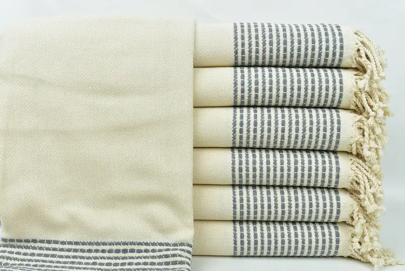 Toalla de playa personalizada de algodón turco con rayas gris oscuro, 36 x 69 pulgadas