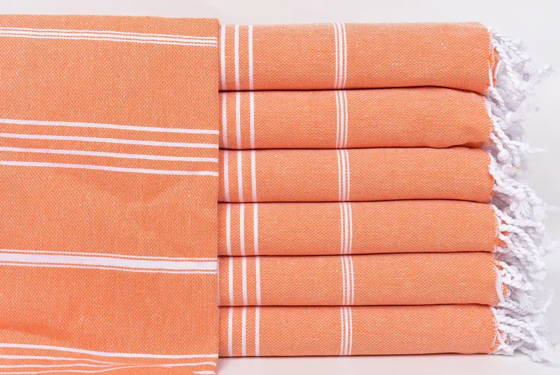 Toalla de playa orgánica a rayas naranja, algodón turco, 40 x 71 pulgadas