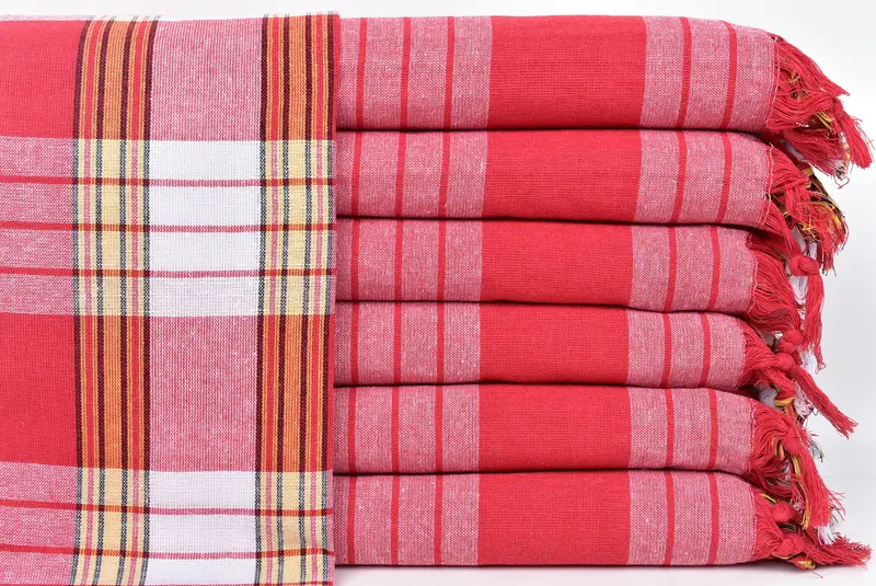 Toalla de algodón orgánico, Peshtemal turco personalizado a rayas rojas, 32x71 pulgadas