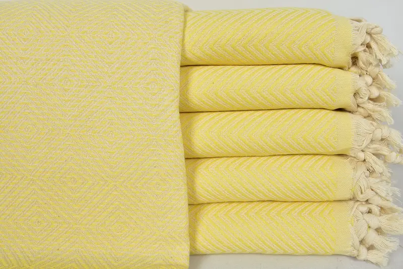 Manta de algodón turco amarilla hecha a mano geométrica, 75x91