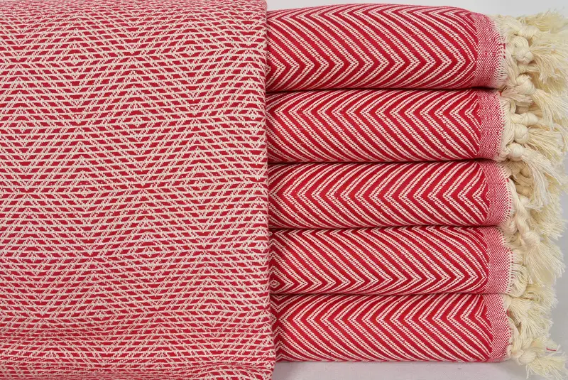 Manta de algodón turco geométrica roja, 75x91 pulgadas, tiro multiusos