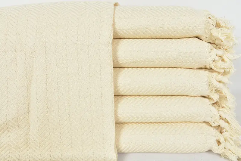 Manta de Algodón Natural Espiga Beige Chevron 78x94 Pulgadas