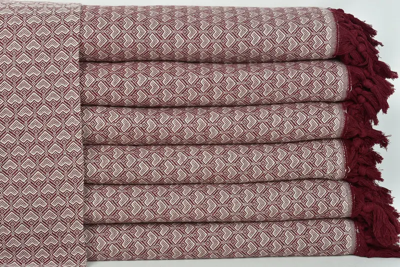 Manta turca con diseño de corazón personalizado, burdeos-blanco, 75x87 pulgadas