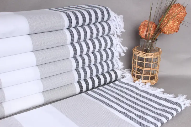 Toalla de playa personalizada de algodón orgánico a rayas gris-negras, 40 x 71 pulgadas