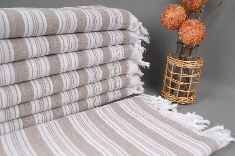 Toalla de playa personalizada a rayas marrones, algodón orgánico, 71x40 pulgadas