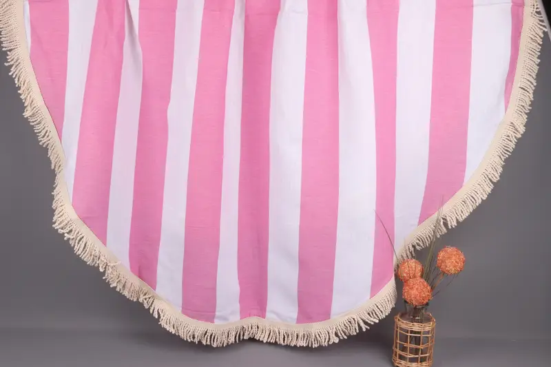 Toalla de playa bordada a rayas fucsia, algodón orgánico, 63x63 pulgadas