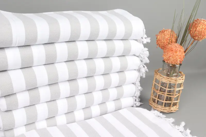 Toalla de playa turca de algodón orgánico a rayas grises, 40 x 67 pulgadas