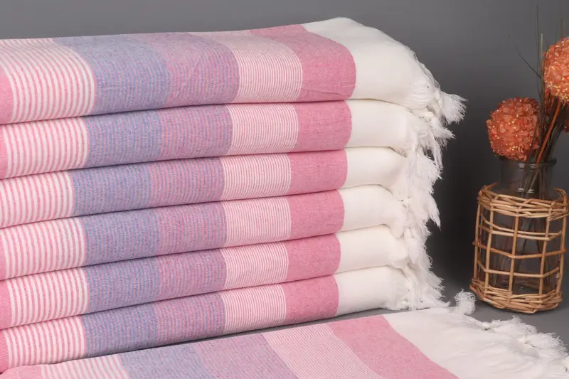 Toalla de playa bordada de algodón orgánico fucsia-azul marino, 40x67 pulgadas