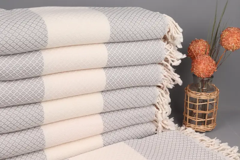 Toalla de playa de algodón orgánico Diamante gris claro, 36 x 71 pulgadas