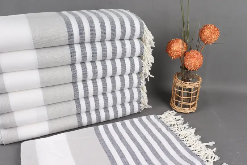 Toalla peshtemal a rayas azul marino y gris de algodón orgánico, 40 x 71 pulgadas