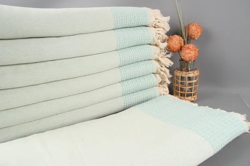 Manta de playa tejida a mano color menta a rayas personalizable 91x95 pulgadas