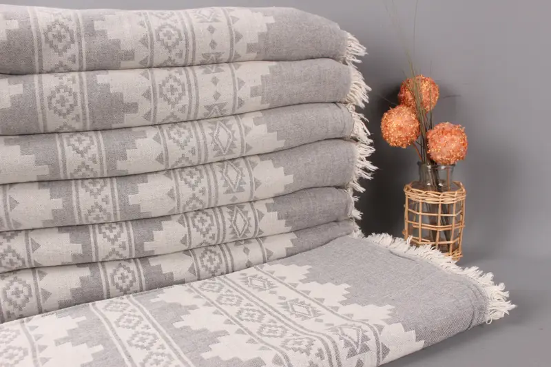 Manta turca de algodón gris oscuro, 79 x 91 pulgadas