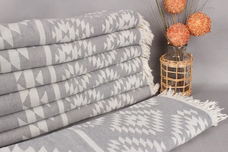 Manta Turca Kilim Gris, Algodón Orgánico, 56x83 Pulgadas
