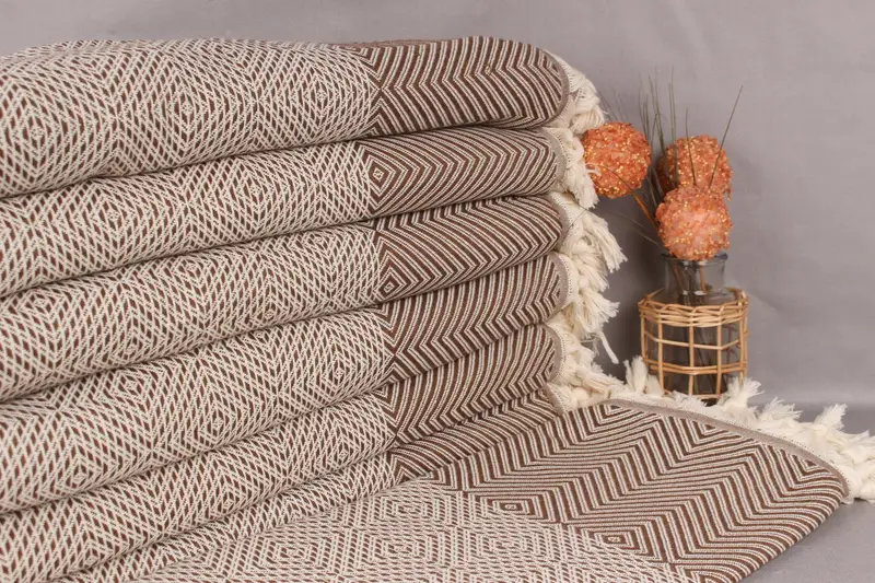 Manta y manta de algodón marrón, 79 x 91 pulgadas