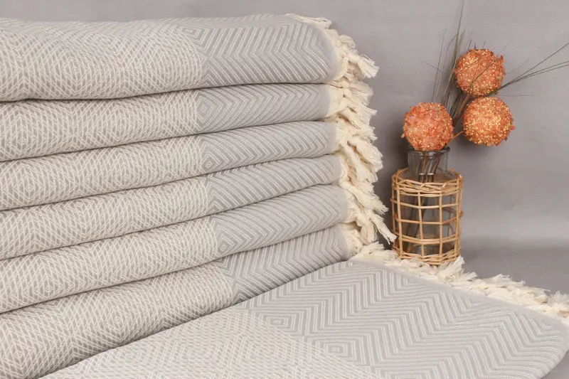 Manta turca Diamante gris, algodón orgánico, 79 x 91 pulgadas